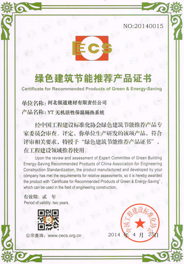 河北銀通建材有限責(zé)任公司,專(zhuān)注于環(huán)保節(jié)能新型保溫材料的研發(fā)和推廣,是北京質(zhì)量檢驗(yàn)認(rèn)證協(xié)會(huì)會(huì)員單位,公司產(chǎn)品YT無(wú)機(jī)活性保溫材料;無(wú)機(jī)輕集料保溫砂漿,無(wú)機(jī)保溫砂漿榮獲住建部:綠色建筑節(jié)能推薦產(chǎn)品證書(shū);中國(guó)著名品牌;全國(guó)保障性住房建設(shè)用材優(yōu)秀供應(yīng)商: